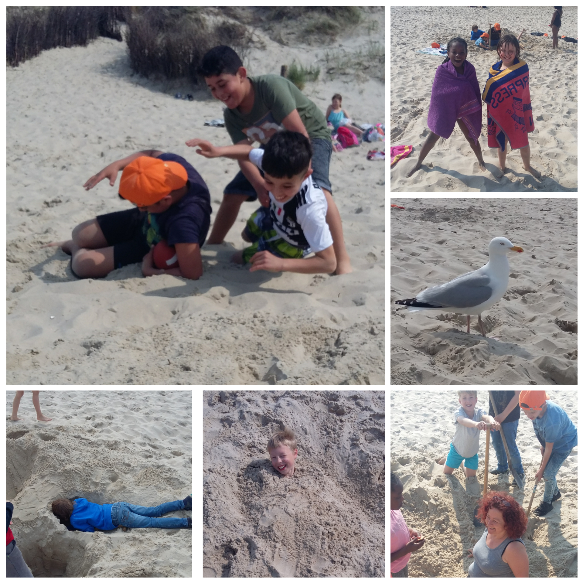 Der letzte Tag der Klassenfahrt war für viele Kinder der „allerbeste“ und lang ersehnte Badetag. Geschützt durch eine vorgelagerte Sandbank stürzten sich die meisten Kinder in die eiskalte Nordsee. Aber auch im Strand ließ es sich bei strahlendem Sonnenschein bestens buddeln, faulenzen und spielen.